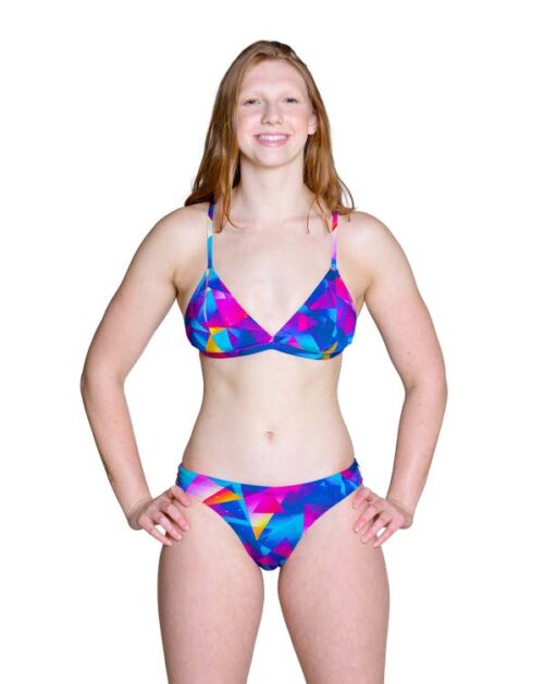 🏊‍♀️ 𝐓𝐨𝐩, con tiras delgadas en “V” súper resistentes, cordón de ajuste con compresión y con revestimiento delantero y posterior.