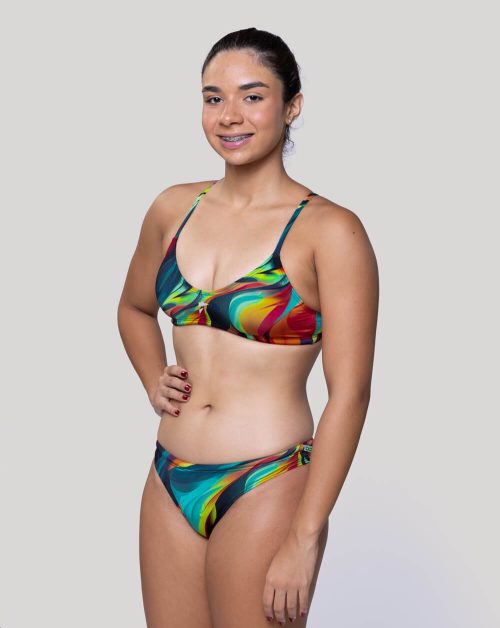 🏊‍♀️ 𝐓𝐨𝐩, con tiras delgadas en “V” súper resistentes, cordón de ajuste con compresión y con revestimiento delantero y posterior.