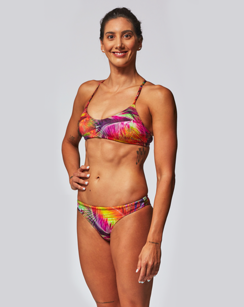 🏊‍♀️ 𝐓𝐨𝐩, con tiras delgadas en “V” súper resistentes, cordón de ajuste con compresión y con revestimiento delantero y posterior.